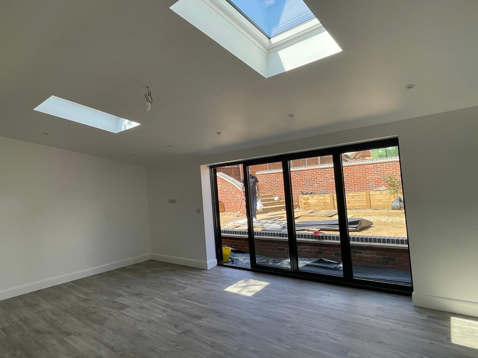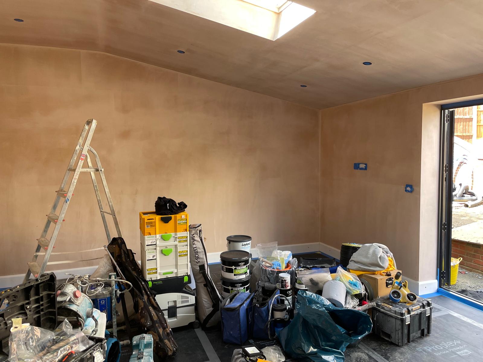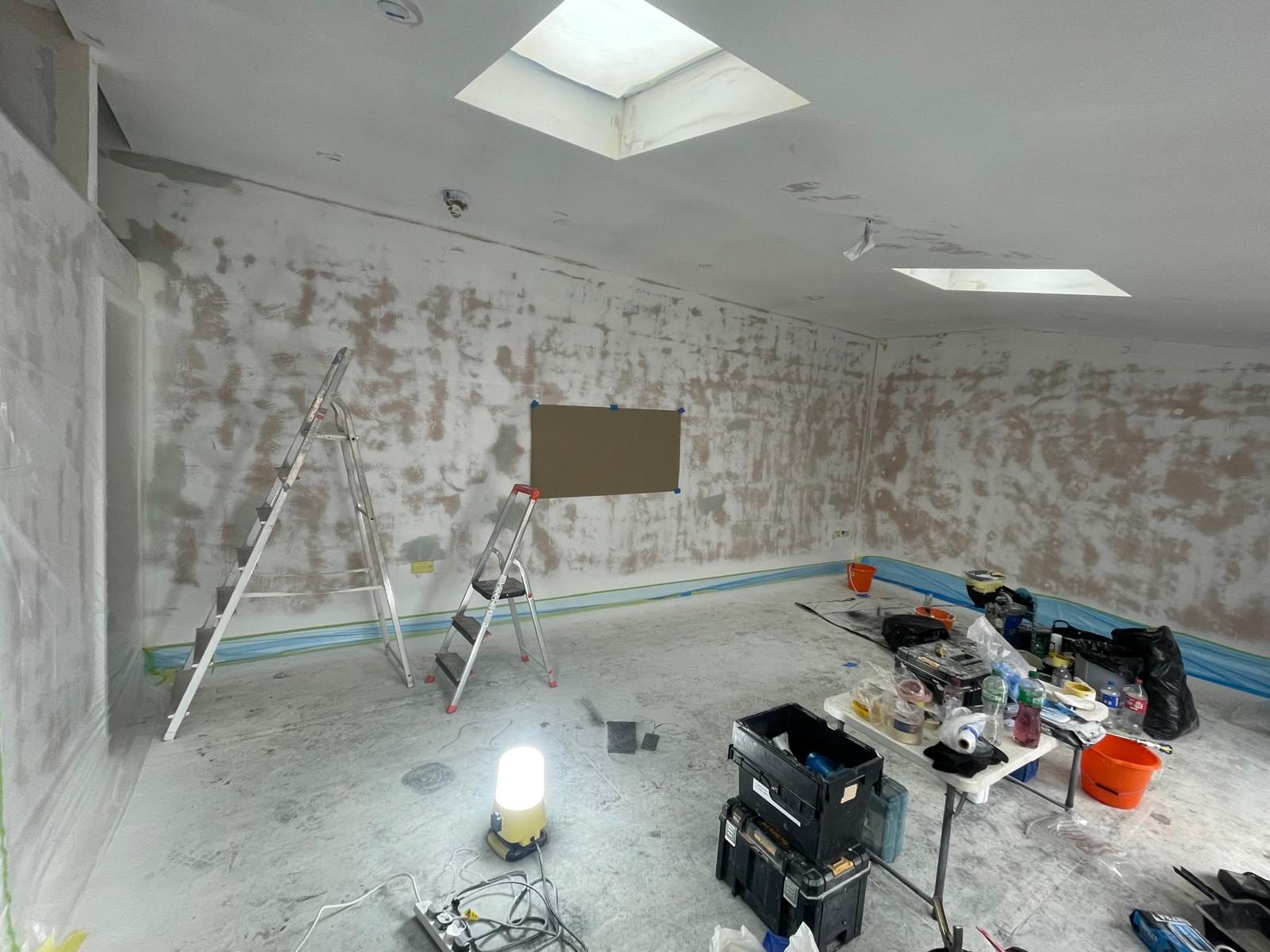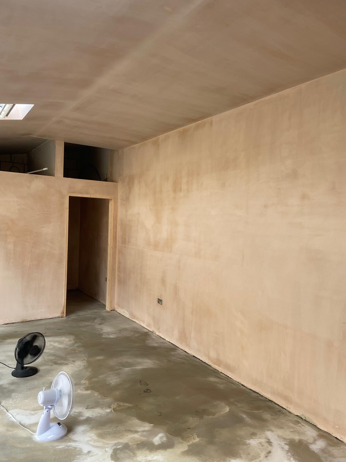 This outbuilding had freshly been plastered, prepared for us to finalise it with paint. Using professional masking and covering technique we was able to provide our customer with an accent wall with crisp edges.